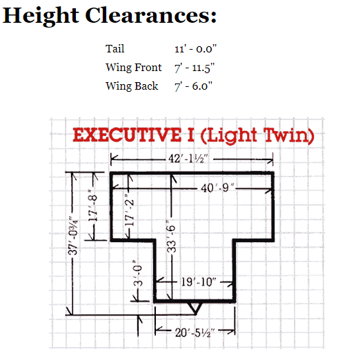 Hangar Dimensions : Standard & Executive : Executive I : Executive II : Executive III