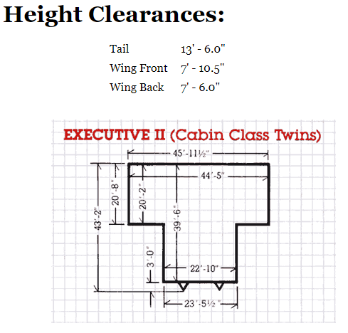 Hangar Dimensions : Standard & Executive : Executive I : Executive II : Executive III